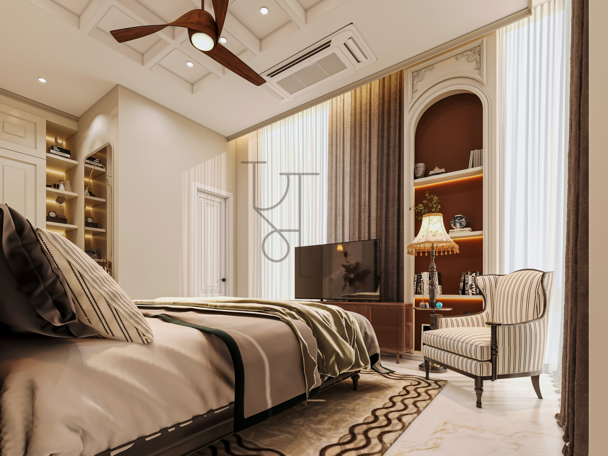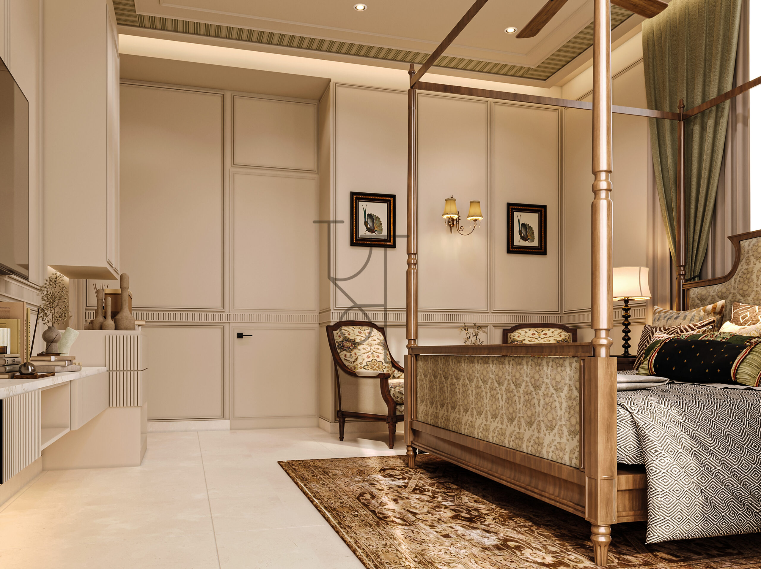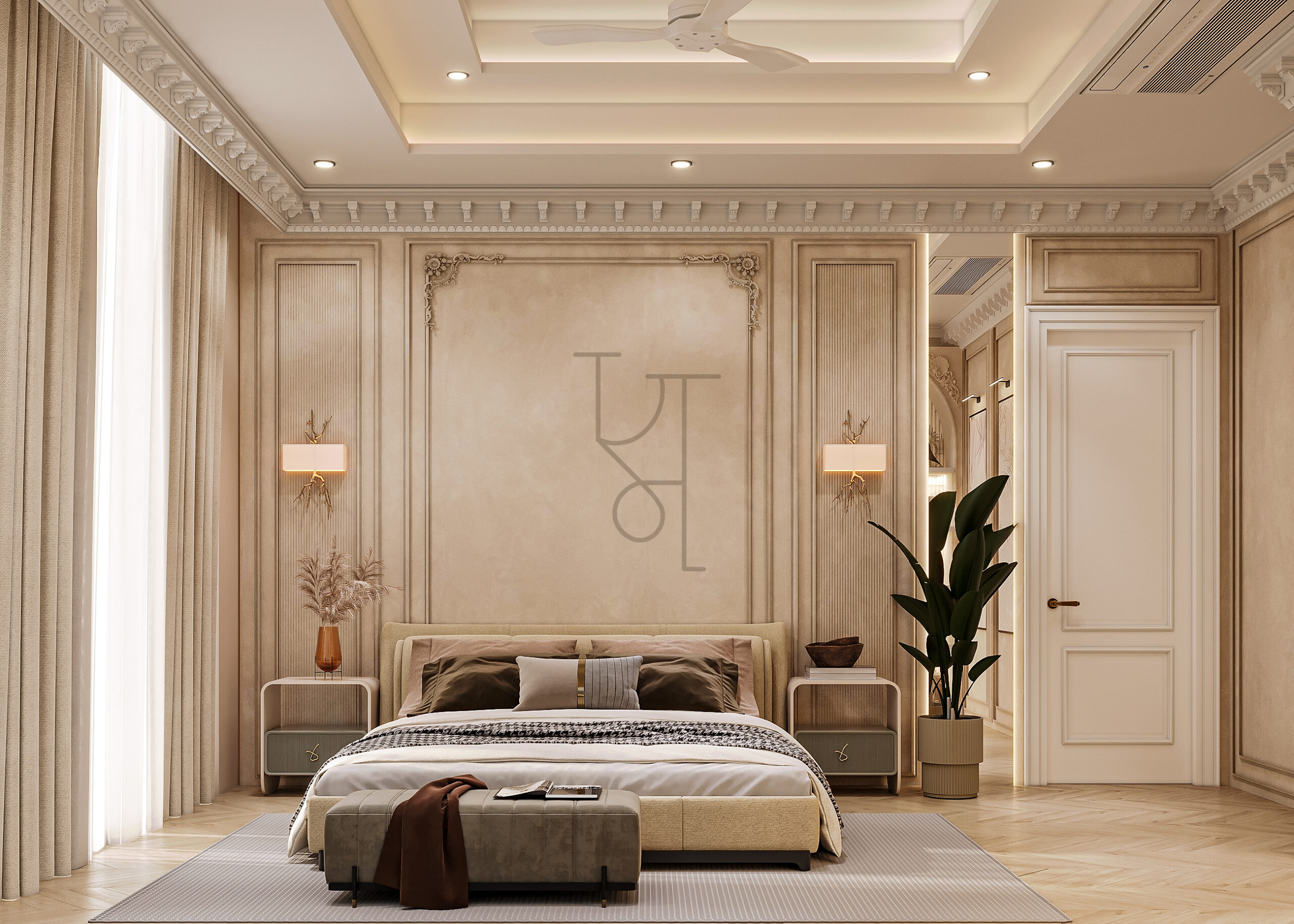 Every Neo-Classical space we design exudes harmony and balance. Ornate mouldings, graceful arches, and refined wall panelling add depth and character, while a soft and neutral color palette keeps the atmosphere calm and elegant. Rich textures, carefully selected materials, and subtle metallic accents lend a sense of quiet luxury without overwhelming the senses.